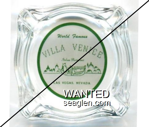 VVE-A1 Villa Venice 3 7/16" Clear Glass Ashtray "World Famous Villa Venice, Italian Restaurant, Las Vegas, Nevada" - Green on white |