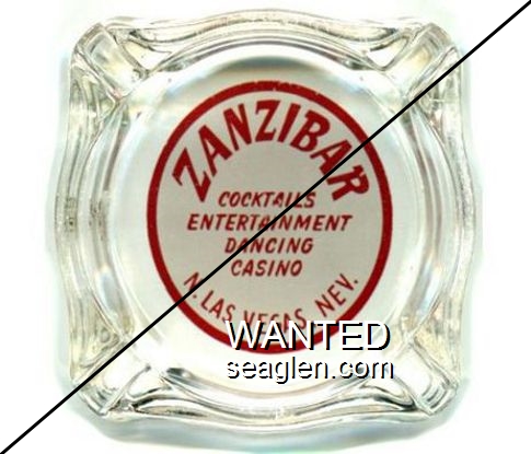 ZAN-A1 Zanzibar 3 7/16" Clear Glass Ashtray "Zanzibar, Cocktails, Entertainment, Dancing, Casino, N. Las Vegas, Nev." - Red on white |