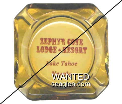 ZEP-02 Zephyr Cove Lodge 3 1/2" Amber Glass Ashtray "Zephyr Cove Lodge - Resort, Lake Tahoe, Nevada" - Red |